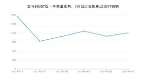 2021年6月,宝马6系GT销量为1203辆,同比增长34.11%,环比增长10.37%。1-6月份,宝马6系GT销量为7295辆,同比增长34.84%。在最近1年中,宝马6系GT销量在2021年01月达到最高,销量为1736辆。
