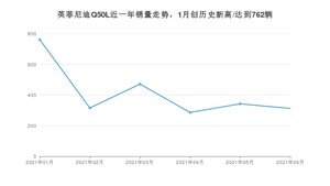 2021年6月,英菲尼迪Q50L销量为313辆,同比下降63.09%,环比下降8.75%。1-6月份,英菲尼迪Q50L销量为2493辆,同比下降34.89%。在最近1年中,英菲尼迪Q50L销量在2021年01月达到最高,销量为762辆。