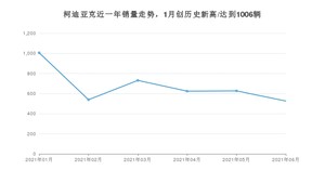 2021年6月,柯迪亚克销量为526辆,同比下降70.68%,环比下降16.11%。1-6月份,柯迪亚克销量为4053辆,同比下降45.6%。在最近1年中,柯迪亚克销量在2021年01月达到最高,销量为1006辆。