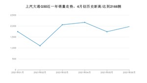 2021年6月,上汽大通G50销量为1974辆,同比增长6.99%,环比增长13.38%。1-6月份,上汽大通G50销量为10783辆,同比增长38.81%。在最近1年中,上汽大通G50销量在2021年04月达到最高,销量为2166辆。