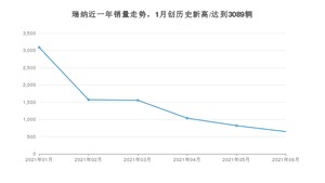 2021年6月,瑞纳销量为646辆,同比下降78.87%,环比下降21.22%。1-6月份,瑞纳销量为8718辆,同比下降43.95%。在最近1年中,瑞纳销量在2021年01月达到最高,销量为3089辆。