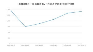 2021年6月,奔腾B70销量为1698辆,环比增长5.73%。1-6月份,奔腾B70销量为8254辆,在最近1年中,奔腾B70销量在2021年01月达到最高,销量为1719辆。