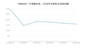 2021年6月,宋MAX销量为1595辆,同比下降25.5%,环比下降4.66%。1-6月份,宋MAX销量为11259辆,同比下降6.32%。在最近1年中,宋MAX销量在2021年01月达到最高,销量为2923辆。
