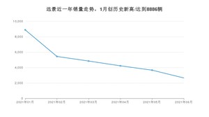 2021年6月,远景销量为2650辆,同比下降61.28%,环比下降27.6%。1-6月份,远景销量为29703辆,同比下降20.16%。在最近1年中,远景销量在2021年01月达到最高,销量为8886辆。