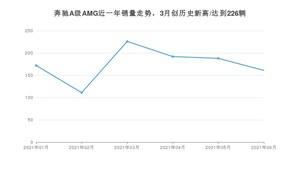 2021年6月,奔驰A级AMG销量为161辆,同比下降17.86%,环比下降14.36%。1-6月份,奔驰A级AMG销量为1050辆,同比增长50.65%。在最近1年中,奔驰A级AMG销量在2021年03月达到最高,销量为226辆。