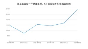 2021年6月,比亚迪e2销量为2952辆,同比增长107.3%,环比增长75.19%。1-6月份,比亚迪e2销量为9792辆,同比增长43.43%。在最近1年中,比亚迪e2销量在2021年06月达到最高,销量为2952辆。