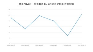 2021年6月,奥迪品牌总体销量达到67668辆,其中奥迪RS 4销量达到52辆,占品牌总销量的0.08%。
