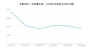 2021年6月,名爵ZS销量为1758辆,同比下降34.35%,环比下降15.2%。1-6月份,名爵ZS销量为13538辆,同比下降13.22%。在最近1年中,名爵ZS销量在2021年01月达到最高,销量为3716辆。
