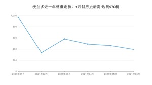 2021年6月,沃兰多销量为393辆,同比下降68.64%,环比下降14.75%。1-6月份,沃兰多销量为3226辆,同比下降45.45%。在最近1年中,沃兰多销量在2021年01月达到最高,销量为970辆。