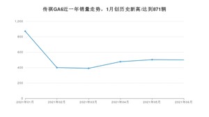 2021年6月,传祺GA6销量为499辆,同比下降58.03%,环比下降0.6%。1-6月份,传祺GA6销量为3137辆,同比下降47.26%。在最近1年中,传祺GA6销量在2021年01月达到最高,销量为871辆。