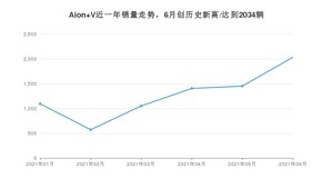 2021年6月,Aion V销量为2034辆,同比增长3%,环比增长40.08%。1-6月份,Aion V销量为7611辆,同比增长13%。在最近1年中,Aion V销量在2021年06月达到最高,销量为2034辆。
