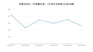 2021年6月,讴歌CDX销量为259辆,同比下降46.6%,环比下降26.42%。1-6月份,讴歌CDX销量为1907辆,同比下降27.49%。在最近1年中,讴歌CDX销量在2021年01月达到最高,销量为419辆。