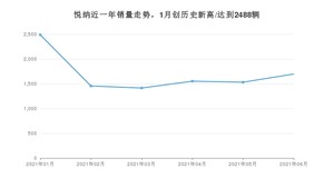 2021年6月,悦纳销量为1696辆,同比下降9.74%,环比增长10.78%。1-6月份,悦纳销量为10135辆,同比下降20.47%。在最近1年中,悦纳销量在2021年01月达到最高,销量为2488辆。
