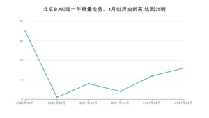 2021年6月,北京BJ90销量为16辆,同比下降54.29%,环比增长33.33%。1-6月份,北京BJ90销量为76辆,同比下降22.45%。在最近1年中,北京BJ90销量在2021年01月达到最高,销量为35辆。