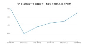 2021年6月,R汽车品牌总体销量达到1025辆,其中R汽车 ER6销量达到702辆,占品牌总销量的68.49%。