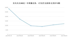 2021年6月,东风风光580销量为2395辆,同比下降40.11%,环比增长12.28%。1-6月份,东风风光580销量为17337辆,同比下降28.97%。在最近1年中,东风风光580销量在2021年01月达到最高,销量为5715辆。