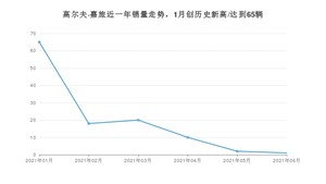 2021年6月,高尔夫·嘉旅销量为1辆,同比下降99.77%,环比下降50%。1-6月份,高尔夫·嘉旅销量为116辆,同比下降95.63%。在最近1年中,高尔夫·嘉旅销量在2021年01月达到最高,销量为65辆。