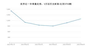 2021年6月,炫界销量为1290辆,同比增长266.48%,环比增长19.67%。1-6月份,炫界销量为7037辆,同比增长1%。在最近1年中,炫界销量在2021年01月达到最高,销量为1713辆。