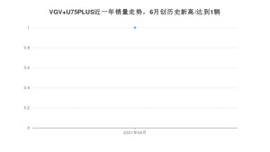 2021年6月,VGV U75PLUS销量为1辆,1-6月份,VGV U75PLUS销量为1辆,在最近1年中,VGV U75PLUS销量在2021年06月达到最高,销量为1辆。