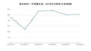 2021年6月,瑞风M4销量为508辆,同比下降20%,环比增长1.2%。1-6月份,瑞风M4销量为2853辆,同比下降1.31%。在最近1年中,瑞风M4销量在2021年04月达到最高,销量为580辆。