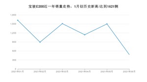 2021年6月,宝骏E200销量为478辆,同比下降74.79%,环比下降68.13%。1-6月份,宝骏E200销量为7140辆,同比增长7.38%。在最近1年中,宝骏E200销量在2021年01月达到最高,销量为1621辆。