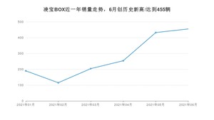 2021年6月,凌宝BOX销量为455辆,同比增长2%,环比增长5.32%。1-6月份,凌宝BOX销量为1650辆,同比增长5%。在最近1年中,凌宝BOX销量在2021年06月达到最高,销量为455辆。
