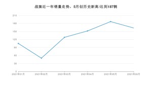 2021年6月,战旗销量为163辆,同比增长13.99%,环比下降12.83%。1-6月份,战旗销量为785辆,同比增长272.04%。在最近1年中,战旗销量在2021年05月达到最高,销量为187辆。