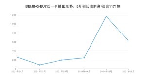 2021年6月,BEIJING-EU7销量为624辆,同比增长302.58%,环比下降46.71%。1-6月份,BEIJING-EU7销量为2594辆,同比增长178.92%。在最近1年中,BEIJING-EU7销量在2021年05月达到最高,销量为1171辆。