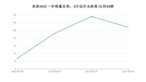 2021年6月,思皓X4销量为27辆,环比下降20.59%。1-6月份,思皓X4销量为91辆,在最近1年中,思皓X4销量在2021年05月达到最高,销量为34辆。