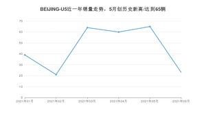 2021年6月,BEIJING-U5销量为23辆,同比下降79.65%,环比下降64.62%。1-6月份,BEIJING-U5销量为272辆,同比下降62.38%。在最近1年中,BEIJING-U5销量在2021年05月达到最高,销量为65辆。