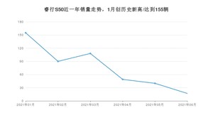 2021年6月,睿行S50销量为17辆,同比下降93.56%,环比下降57.5%。1-6月份,睿行S50销量为459辆,同比下降70.02%。在最近1年中,睿行S50销量在2021年01月达到最高,销量为155辆。