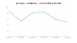 2021年6月,枫叶30x销量为74辆,同比下降26%,环比下降15.91%。1-6月份,枫叶30x销量为625辆,同比增长281.1%。在最近1年中,枫叶30x销量在2021年01月达到最高,销量为131辆。
