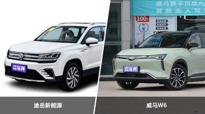 还是以两个车系中主销车型来进行对比,分别是2021款 途岳新能源 全景优享版(以下简称途岳新能源)及2021款 威马W6 520km NEX探索版(以下简称威马W6)。