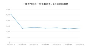2021年7月,十堰市汽车总销量为2639辆,同比增长15.8%,环比增长5.64%。1-7月份,十堰市总销量为20947辆,同比增长47.19%。在最近1年中,十堰市销量在2021年01月达到最高,销量为5102辆。