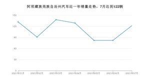 2021年7月,阿坝藏族羌族自治州汽车总销量为122辆,同比增长28.42%,环比增长48.78%。1-7月份,阿坝藏族羌族自治州总销量为776辆,同比增长5.29%。在最近1年中,阿坝藏族羌族自治州销量在2021年03月达到最高,销量为138辆。
