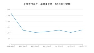 2021年7月,平凉市汽车总销量为1260辆,同比下降1.02%,环比增长21.15%。1-7月份,平凉市总销量为9545辆,同比增长10.96%。在最近1年中,平凉市销量在2021年01月达到最高,销量为2628辆。