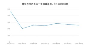 2021年7月,嘉峪关市汽车总销量为255辆,同比下降3.41%,环比下降4.85%。1-7月份,嘉峪关市总销量为1971辆,同比增长15.33%。在最近1年中,嘉峪关市销量在2021年01月达到最高,销量为457辆。