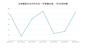 2021年7月,玉树藏族自治州汽车总销量为54辆,同比增长14.89%,环比增长217.65%。1-7月份,玉树藏族自治州总销量为236辆,同比增长4.89%。在最近1年中,玉树藏族自治州销量在2021年04月达到最高,销量为55辆。