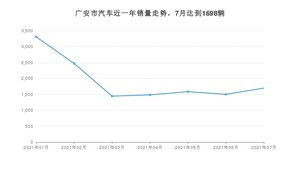 2021年7月,广安市汽车总销量为1698辆,同比增长9.06%,环比增长13.12%。1-7月份,广安市总销量为13494辆,同比增长27.1%。在最近1年中,广安市销量在2021年01月达到最高,销量为3309辆。