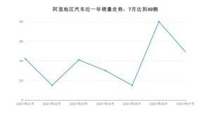 2021年7月,阿里地区汽车总销量为49辆,同比增长308.33%,环比下降38.75%。1-7月份,阿里地区总销量为272辆,同比增长240%。在最近1年中,阿里地区销量在2021年06月达到最高,销量为80辆。