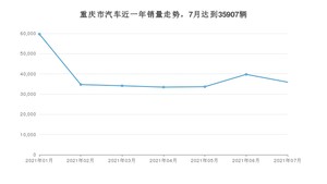 2021年7月,重庆市汽车总销量为35907辆,同比增长7.94%,环比下降9.67%。1-7月份,重庆市总销量为271264辆,同比增长25.36%。在最近1年中,重庆市销量在2021年01月达到最高,销量为59694辆。