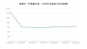 2021年7月,星越销量为965辆,同比下降51.89%,环比增长2.55%。1-7月份,星越销量为7452辆,同比下降50.54%。在最近1年中,星越销量在2021年01月达到最高,销量为1899辆。
