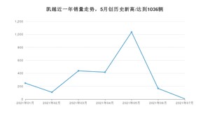 2021年7月,凯越销量为7辆,同比下降97.51%,环比下降95.78%。1-7月份,凯越销量为2420辆,同比下降10.67%。在最近1年中,凯越销量在2021年05月达到最高,销量为1036辆。