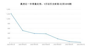 2021年7月,翼虎销量为25辆,同比下降95.95%,环比下降56.14%。1-7月份,翼虎销量为2754辆,同比下降37.3%。在最近1年中,翼虎销量在2021年01月达到最高,销量为1215辆。