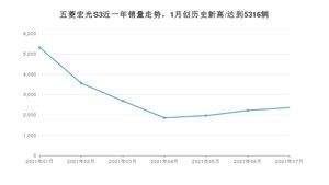2021年7月,五菱宏光S3销量为2355辆,同比下降23.31%,环比增长6.08%。1-7月份,五菱宏光S3销量为19958辆,同比下降24.56%。在最近1年中,五菱宏光S3销量在2021年01月达到最高,销量为5316辆。