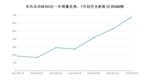 2021年7月,东风本田M-NV销量为680辆,环比增长28.54%。1-7月份,东风本田M-NV销量为2540辆,在最近1年中,东风本田M-NV销量在2021年07月达到最高,销量为680辆。