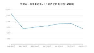 2021年7月,君威销量为8231辆,同比下降19.32%,环比下降24.51%。1-7月份,君威销量为72302辆,同比增长9.52%。在最近1年中,君威销量在2021年01月达到最高,销量为15722辆。