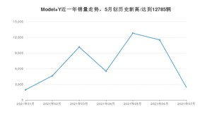 2021年7月,Model Y销量为2397辆,环比下降79.18%。1-7月份,Model Y销量为48967辆,在最近1年中,Model Y销量在2021年05月达到最高,销量为12785辆。