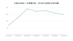 2021年7月,红旗E-HS9销量为296辆,环比下降6.03%。1-7月份,红旗E-HS9销量为2077辆,在最近1年中,红旗E-HS9销量在2021年03月达到最高,销量为378辆。