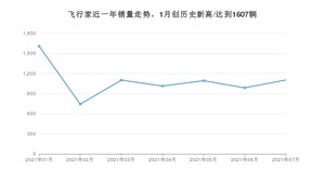 2021年7月,飞行家销量为1102辆,同比增长101.83%,环比增长11.76%。1-7月份,飞行家销量为7643辆,同比增长1%。在最近1年中,飞行家销量在2021年01月达到最高,销量为1607辆。